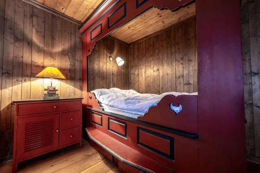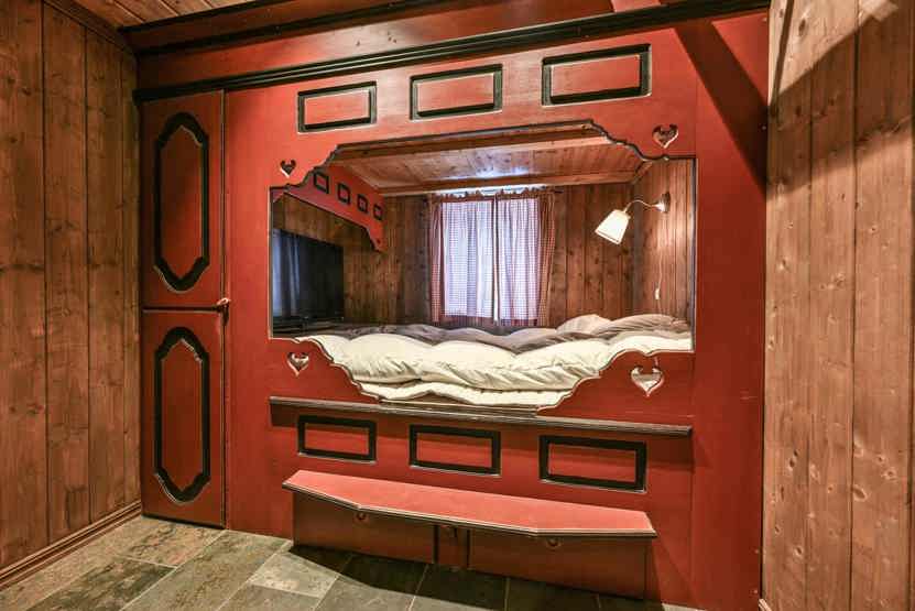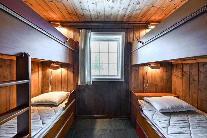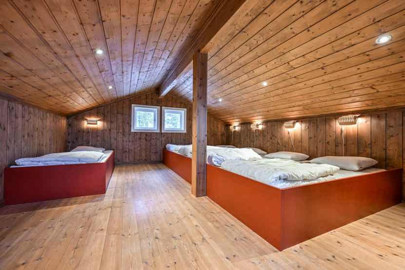 Soveværelse 1 + 2: 1 dobbeltseng 160 cm bred. Soveværelse 3: 1 dobbeltseng 150 cm bred. Soveværelse 4: 1 køjeseng med 140 cm bred underkøje og 90 cm bred overkøje. Soveværelse 5: 1 køjeseng med 120 cm bred underkøje og 90 cm bred overkøje. Soveværelse 6: 2 køjesenge 75 cm bred. Hems 1: 5 enkeltsenge. Hems 2: 1 enkeltseng.