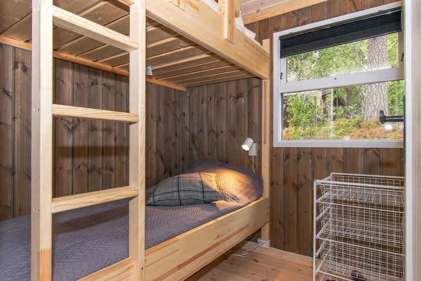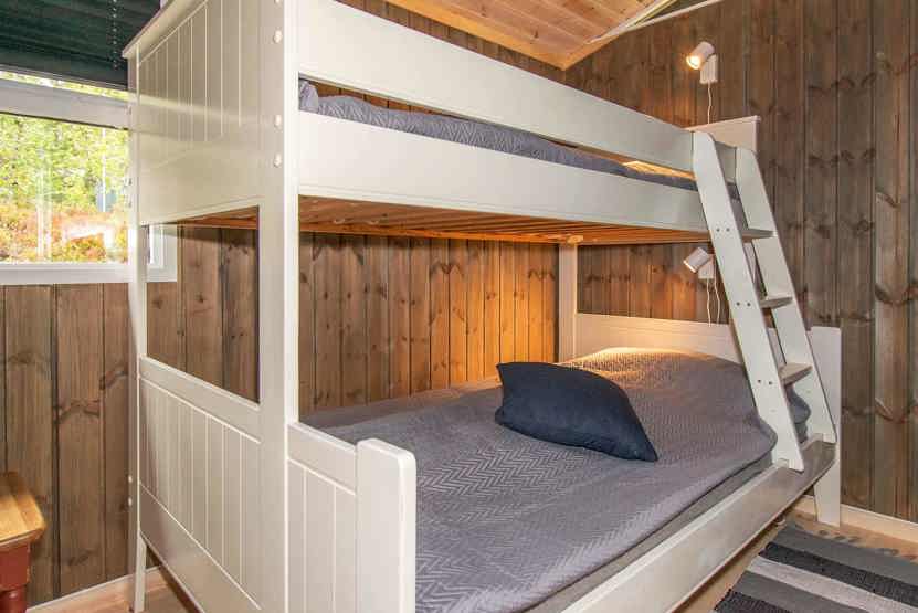 Soveværelse 1: 1 dobbeltseng 150 cm bred. Soveværelse 2: 1 køjeseng med 120 cm bred underkøje og 90 cm bred overkøje. Soveværelse 3: 1 køjeseng med 120 cm bred underkøje og 90 cm bred overkøje. Soveværelse 4: 1 køjeseng.