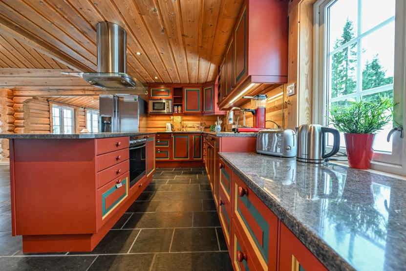 6+1 personers hytte i 2 etager på 156 m², Stort køkken / allrum med spiseplads. Opholdsstue med pejs og TV. I tillæg stue med sofa og TV. 3 soveværelser + hems med 1 dobbeltseng. 2 brusere, 2 WC. Terrasse. Adgang til elbilopladere med type 2 stik mod betaling.