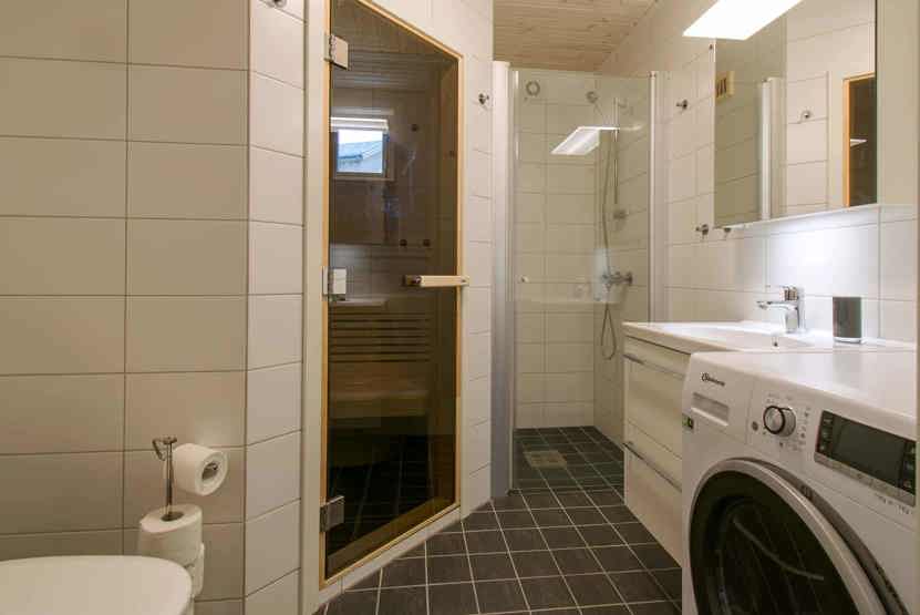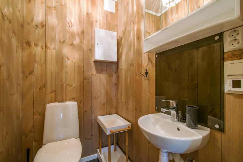 Bad 1: Bruser, WC og sauna. Bad 2: WC.