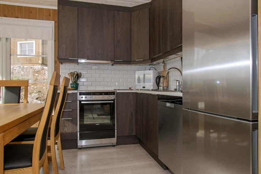 Enheden har komfur med ovn, opvaskemaskine, mikrobølgeovn, køleskab, fryser.