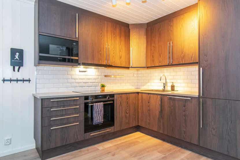 Enheden har komfur med ovn, opvaskemaskine, mikrobølgeovn, køleskab, fryser.