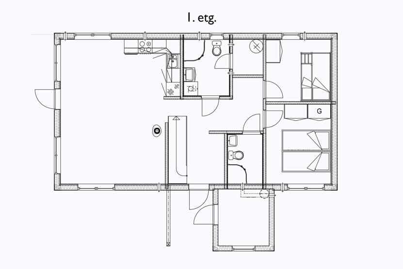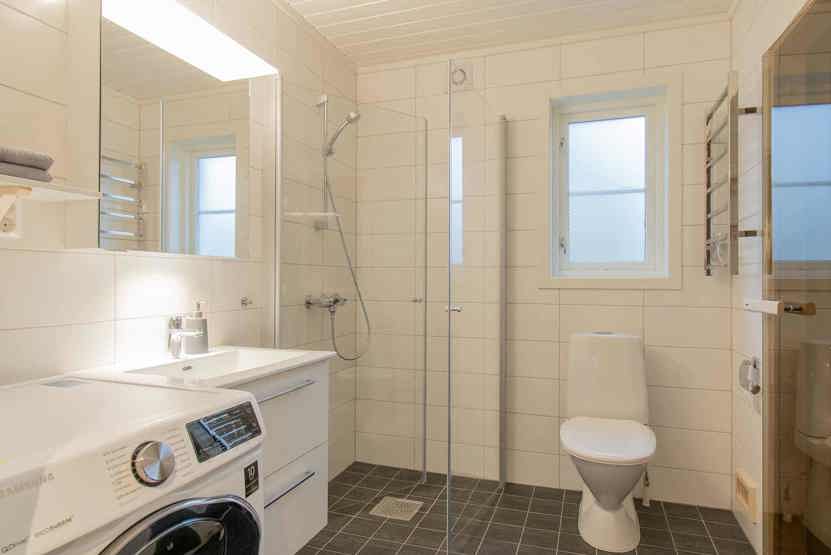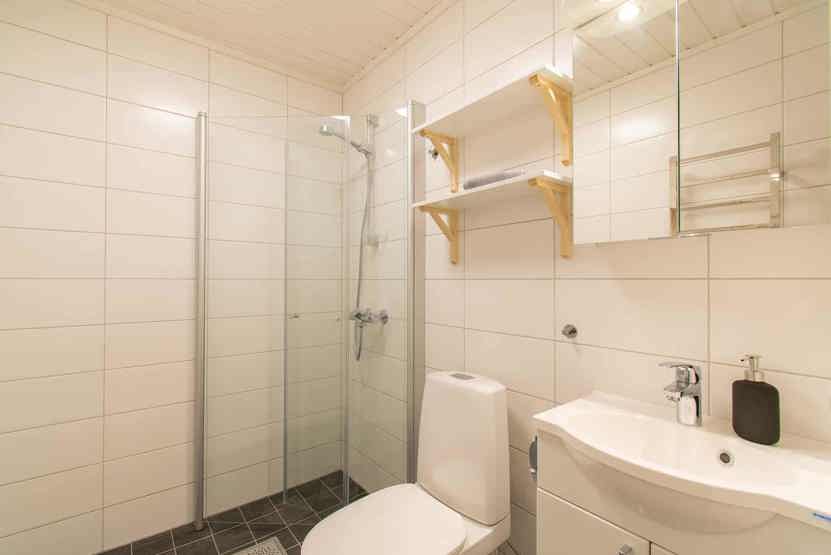 Bad 1: Bruser, WC og sauna. Bad 2: Bruser og WC.