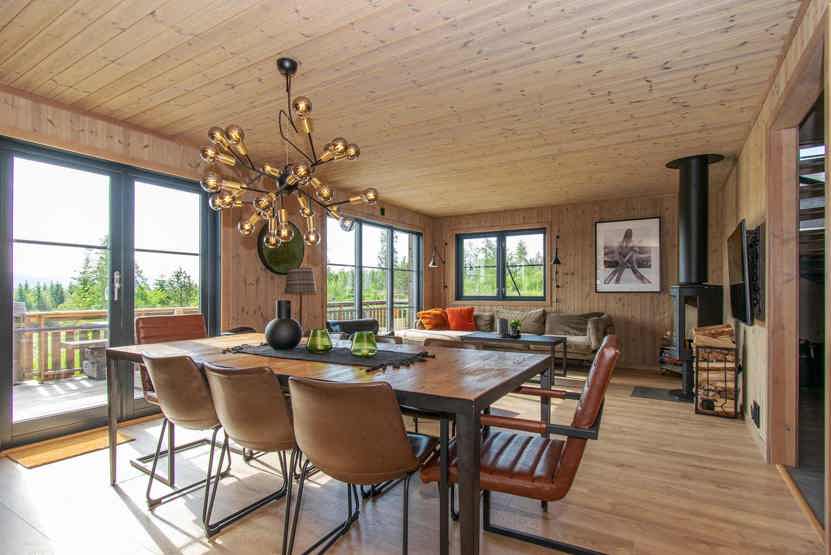Trysilfjellet Arena 113 Hytte i 2 etager med 8+2 sengepladser, 120 m², køkkenafdeling, opholdsstue, pejs, TV, 4 soveværelser, 1 bruser, 2 WC, 1 sauna. Vaskemaskine, tørretumbler, havemøbler. Skiopbevaring og tørreskab.