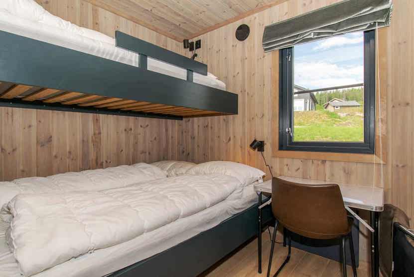 Soveværelse 1: 1 køjeseng med 140 cm bred underkøje og 90 cm bred overkøje. Soveværelse 2: 1 dobbeltseng 150 cm bred. Soveværelse 3: 1 køjeseng med 140 cm bred underkøje og 90 cm bred overkøje. Soveværelse 4: 2 enkeltsenge.