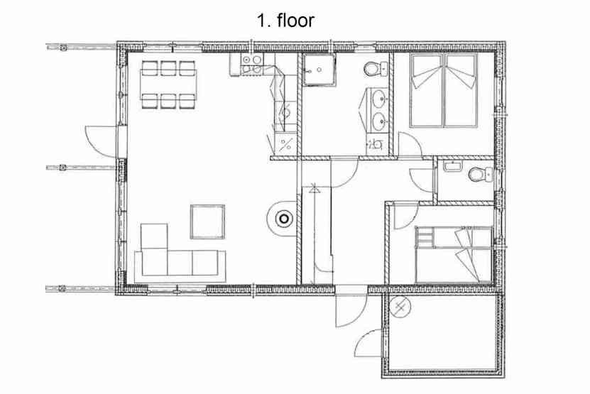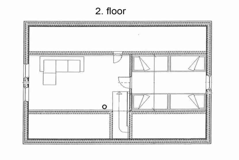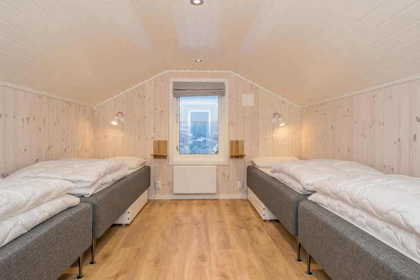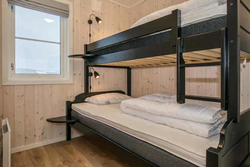 Soveværelse 1: 1 dobbeltseng 150 cm bred. Soveværelse 2: 1 køjeseng med 120 cm bred underkøje og 90 cm bred overkøje. Soveværelse 3: 4 enkeltsenge.