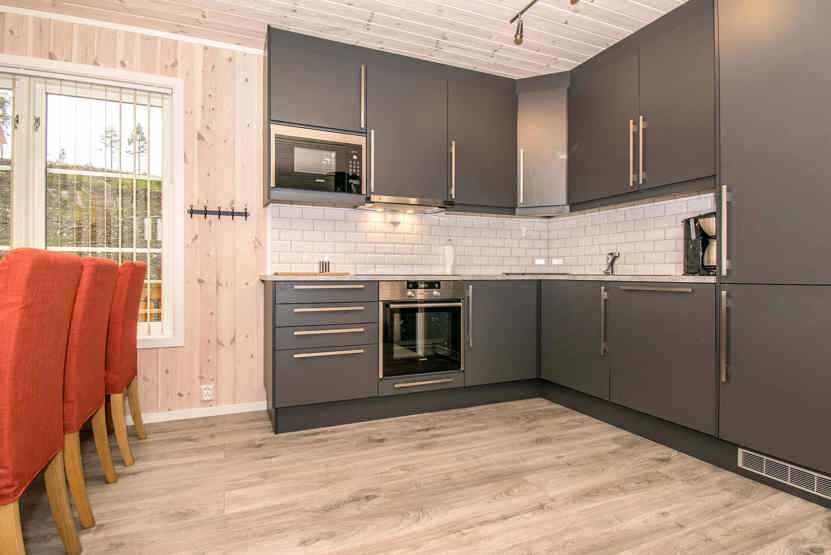 Enheden har komfur med ovn, opvaskemaskine, mikrobølgeovn, køleskab, fryser.