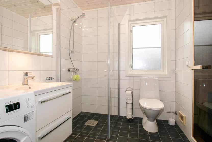 Bad 1: Bruser, WC og sauna. Bad 2: Bruser og WC.