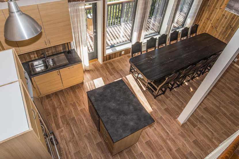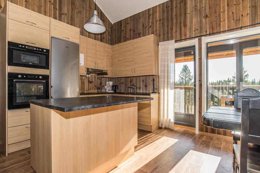 Enheden har komfur med ovn, opvaskemaskine, mikrobølgeovn, køleskab, fryser.