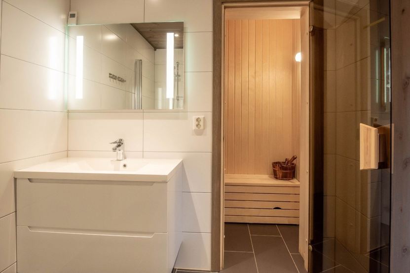 Badeværelser: Bad 1: Bruser og WC og sauna.