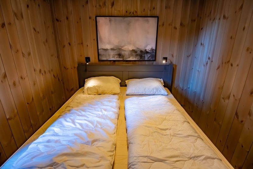 Soveværelse 1: 1 dobbeltseng 150 cm bred. Soveværelse 2 + 3: 1 køjeseng med 120 cm bred underkøje og 90 cm bred overkøje.