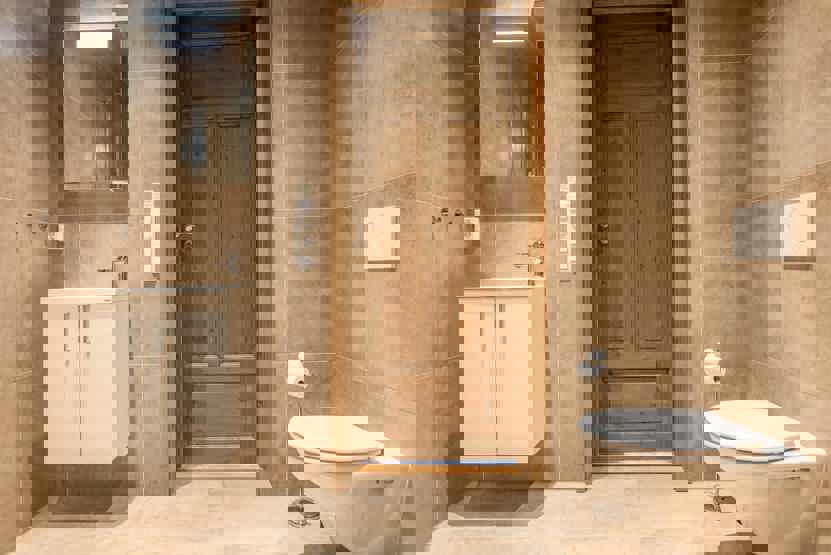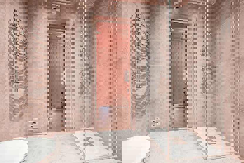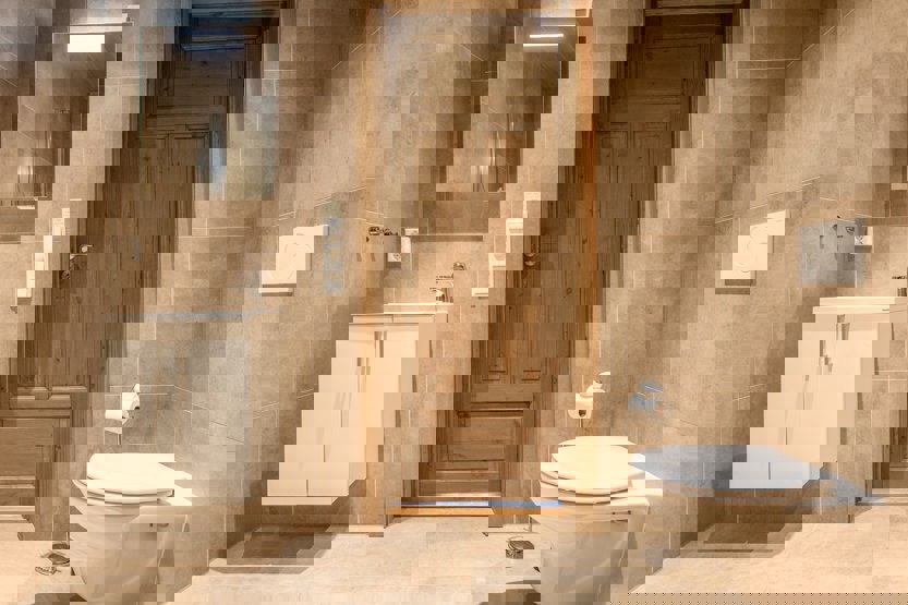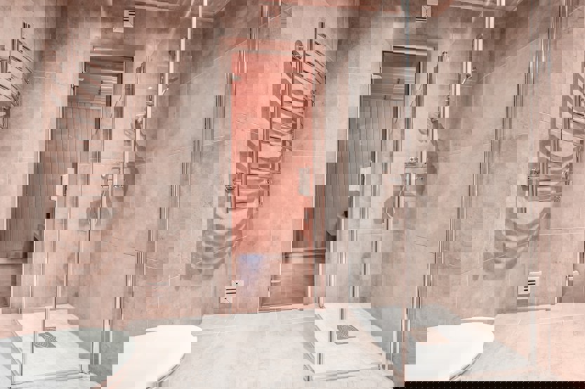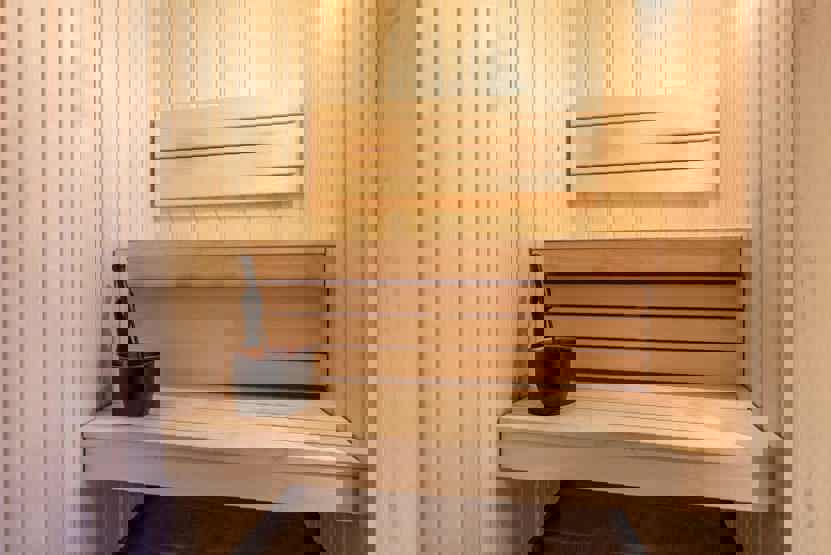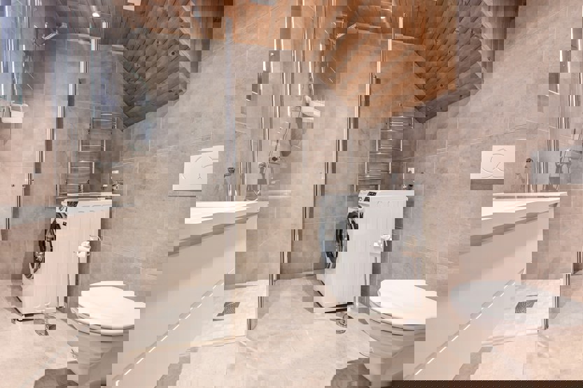 Badeværelser: Bad 1: Bruser og WC og sauna. Bad 2 med bruser og WC.