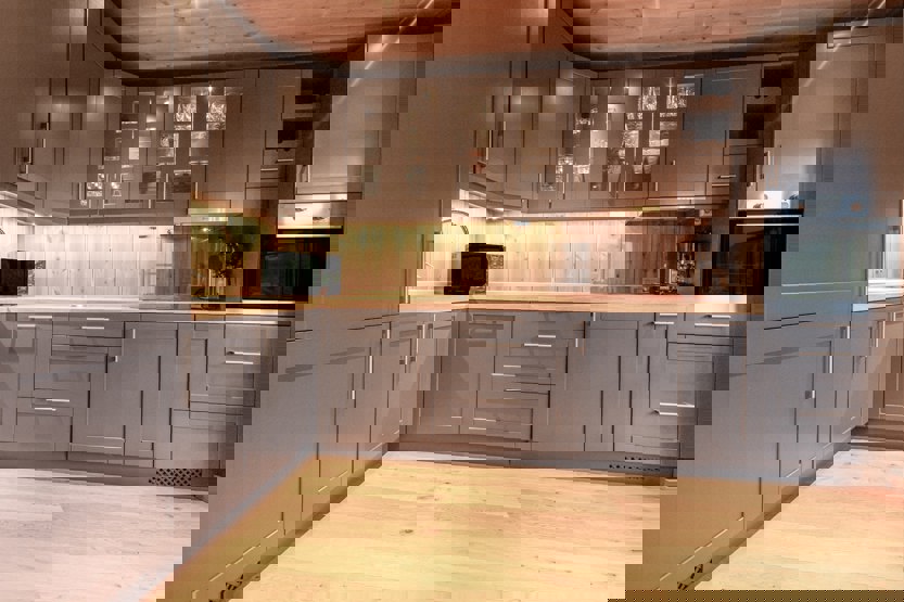 Køkken: Enheden har komfur med ovn, opvaskemaskine, mikrobølgeovn, køleskab, fryser.