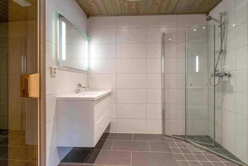 Badeværelser: Bad 1: Bruser og WC og sauna.