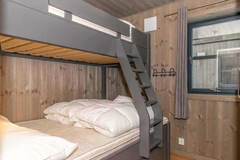 Soveværelse 1: 1 dobbeltseng 160 cm bred. Soveværelse 2: 1 køjeseng med 120 cm bred underkøje og 90 cm bred overkøje. Soveværelse 3: 1 køjeseng med 120 cm bred underkøje og 90 cm bred overkøje.