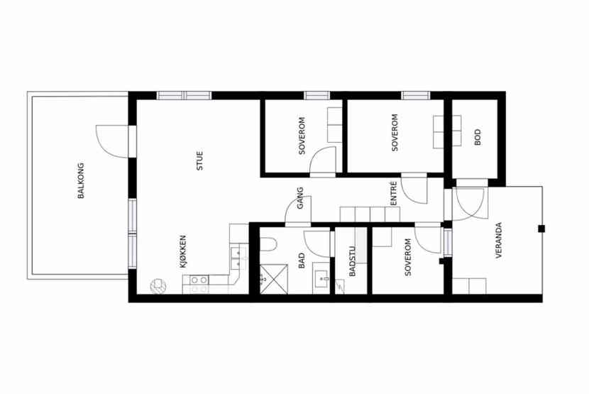 Lejligheden er i et plan. 6+2 sengepladser, 70 kvm, 3 soveværelser.