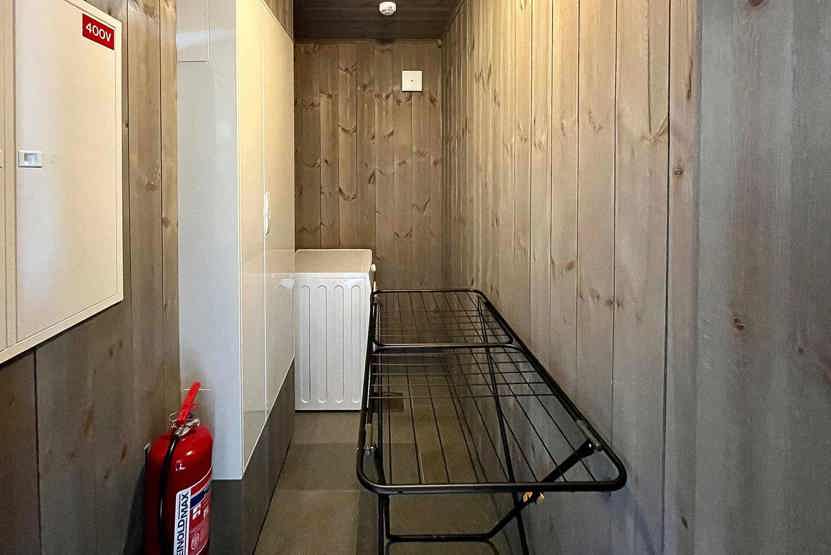 Åben planløsning med køkkenafdeling med spiseplads, sofagruppe og brændeovn. 1 bruser, 1 WC, 1 sauna, vaskemaskine. 1 garagepladser. Skibod. Byggestøj kan forekomme