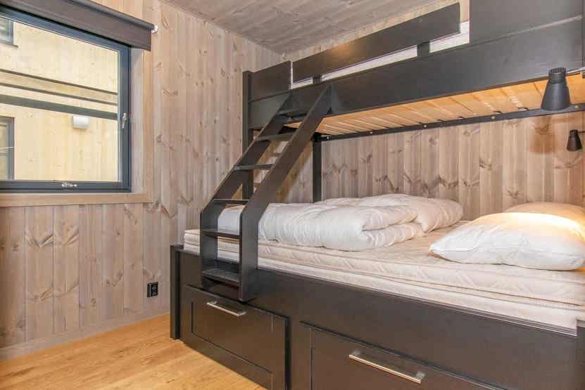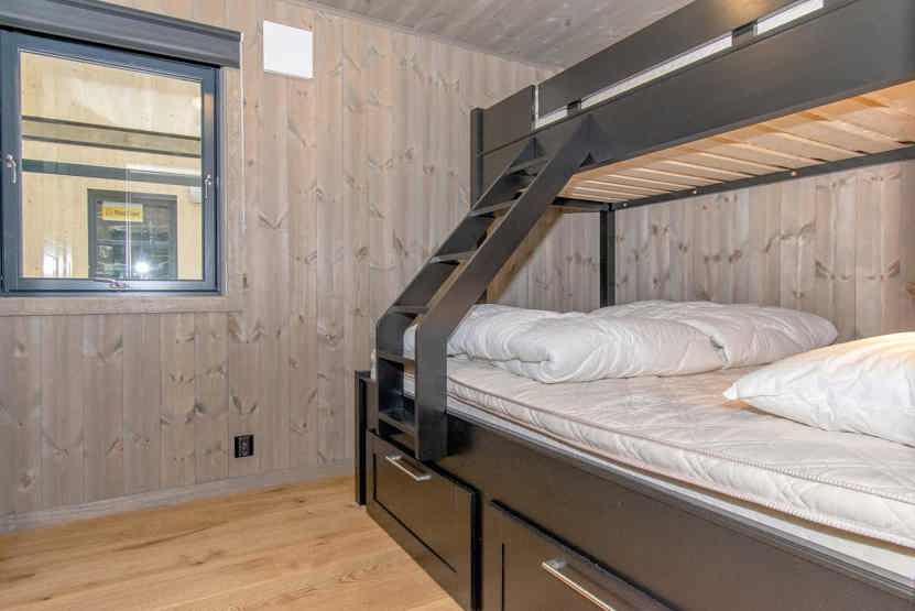 Soveværelse 1: 1 dobbeltseng 160 cm bred. Soveværelse 2: 1 køjeseng med 150 cm bred underkøje og 90 cm bred overkøje. Soveværelse 3: 1 køjeseng med 150 cm bred underkøje og 90 cm bred overkøje. Soveværelse 4: 1 køjeseng med 150 cm bred underkøje og 90 cm bred overkøje.