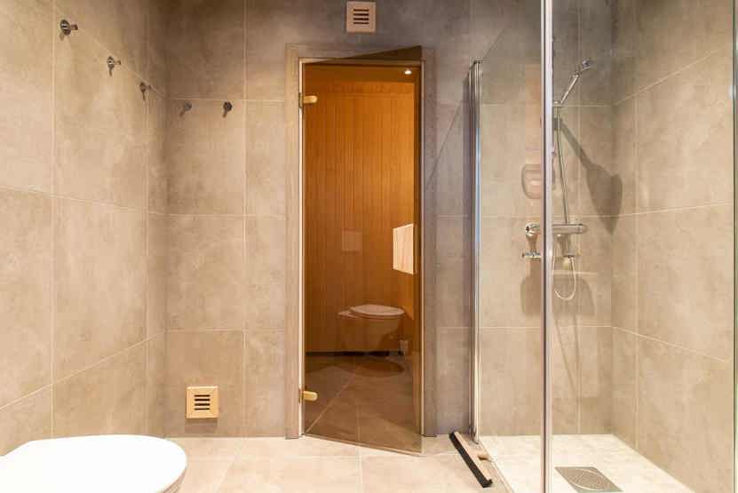 Badeværelser: Bad 1: Bruser og WC og sauna. Bad 2 med bruser og WC.