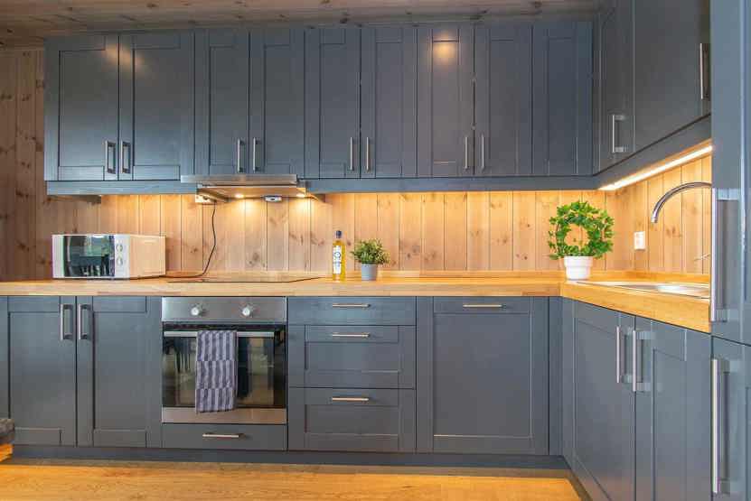 Køkken: Enheden har komfur med ovn, opvaskemaskine, mikrobølgeovn, køleskab, fryser.