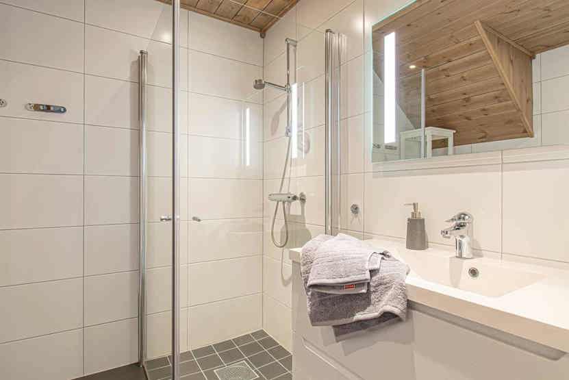 Badeværelser: Bad 1: Bruser og WC og sauna. Bad 2 med bruser og WC.