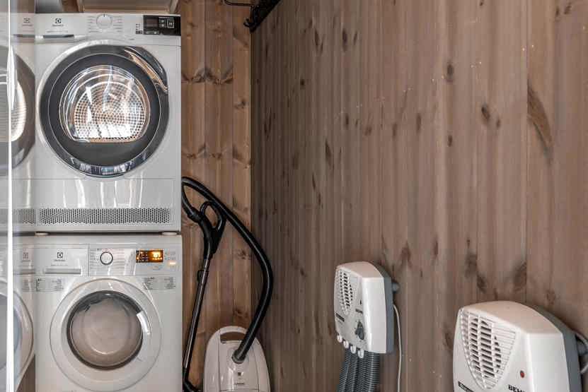 Ekstra info: Opholdsstue med TV, pejsindsats. Skotørrer, vaskemaskine, tørretumbler, skiopbevaring, 2 garageplads(er).