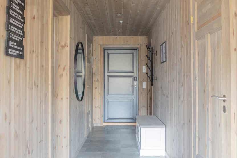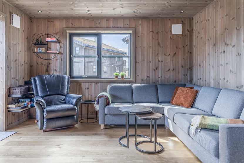 Åben planløsning med køkkenafdeling med spiseplads, sofagruppe og brændeovn. 1 bruser, 1 WC, 1 sauna, vaskemaskine. 2 garagepladser. Skibod. Byggestøj kan forekomme
