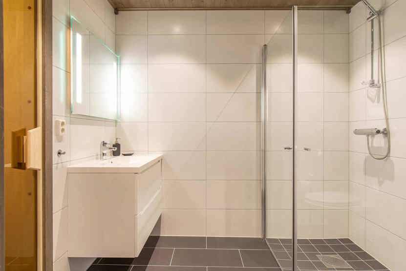 Badeværelser: Bad 1: Bruser og WC og sauna.