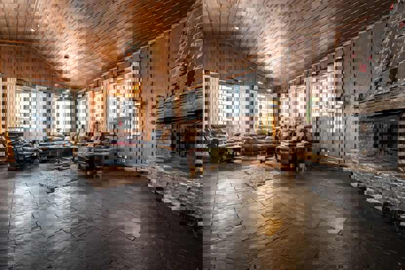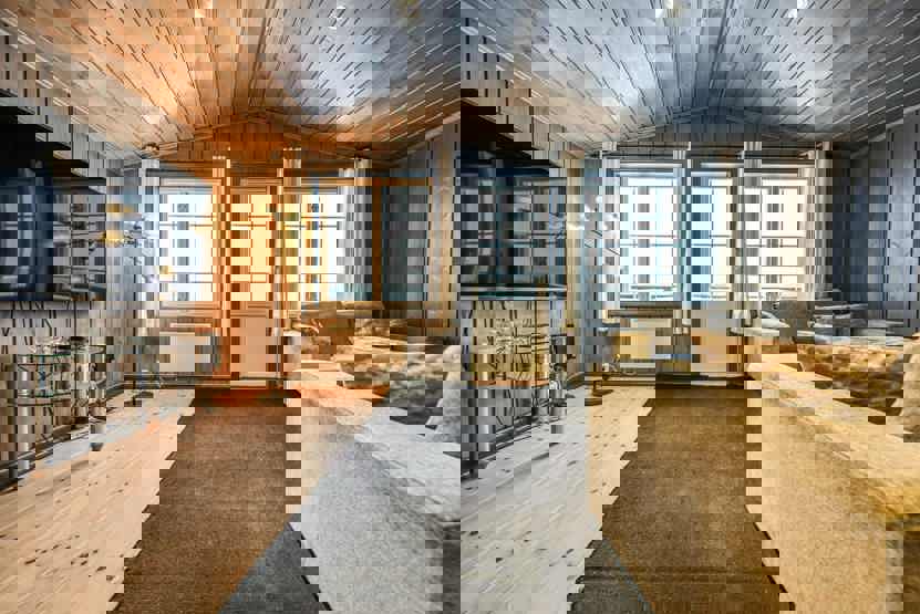 16 pers. storhytte 165 m² fordelt på to etager, fin indretning og af høj kvalitet.
