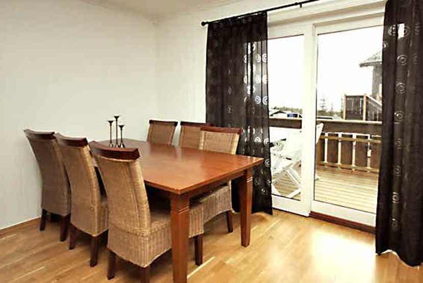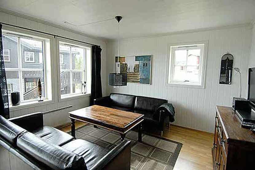 Lejlighed i stueetage, 6 sengepladser, 68 m², opholdsstue med brændeovn, TV og køkkenafdeling, 3 soveværelser, 1 bruser, 1 WC, 1 sauna. Vaskemaskine, 1 skotørrer. Skiopbevaring.