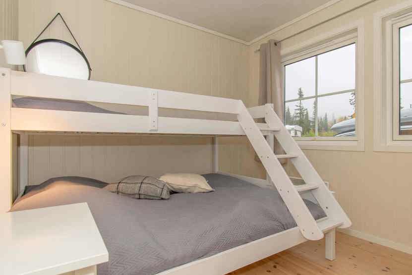 Soveværelse 1: 1 dobbeltseng 150 cm bred. Soveværelse 2: 1 køjeseng med 150 cm bred underkøje. Soveværelse 3: 1 køjeseng med 120 cm bred underkøje.
