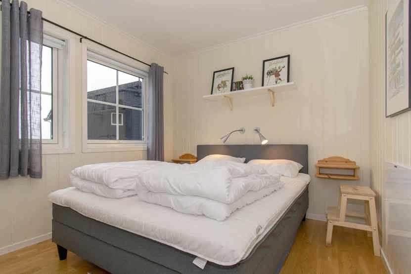 Soveværelse 1: 1 dobbeltseng. Soveværelse 2: 1 dobbeltseng. Soveværelse 3: 1 køjeseng med 120 cm bred underkøje.