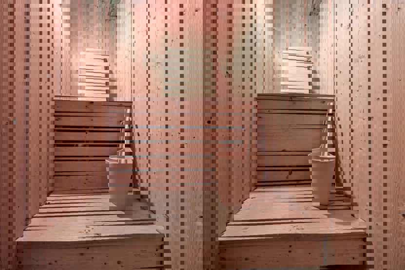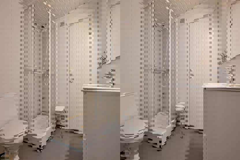Badeværelser: Bad 1: Bruser, WC og sauna.