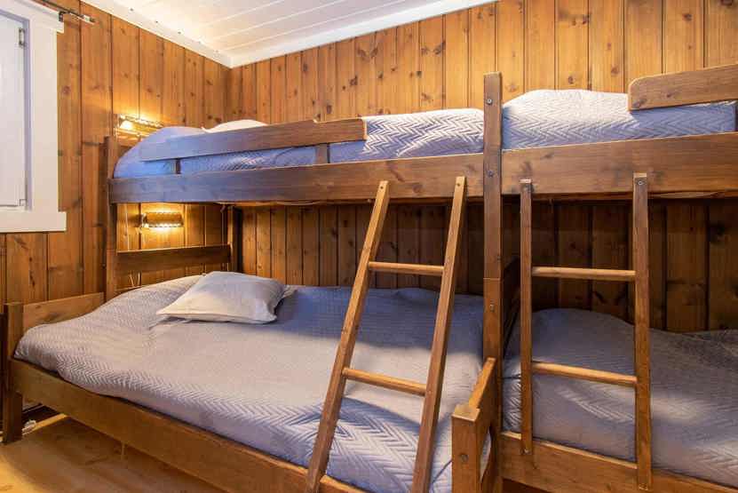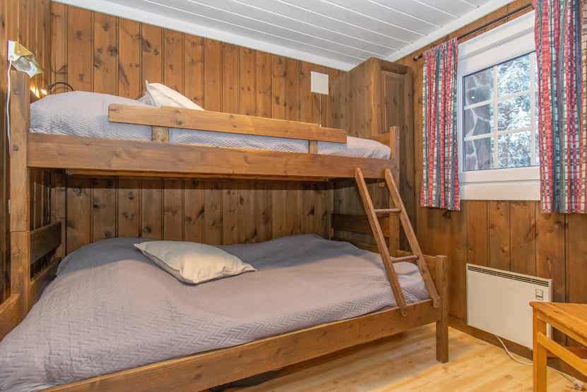 Soveværelse 1: 1 køjeseng med 110 cm bred underkøje og 75 cm bred overkøje. Soveværelse 2: 1 køjeseng 75 cm bred, 1 køjeseng med 115 cm bred underkøje og 75 cm bred overkøje.