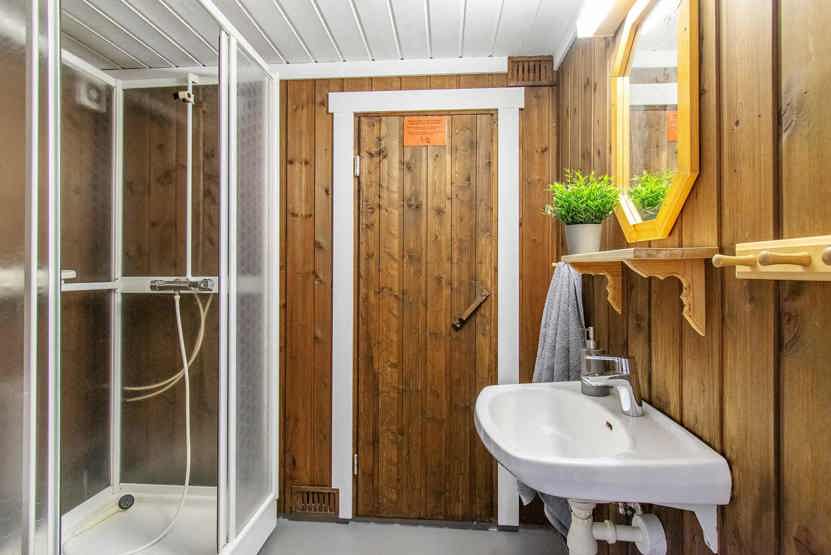 Badeværelser: Bad 1: Bruser, WC og sauna.