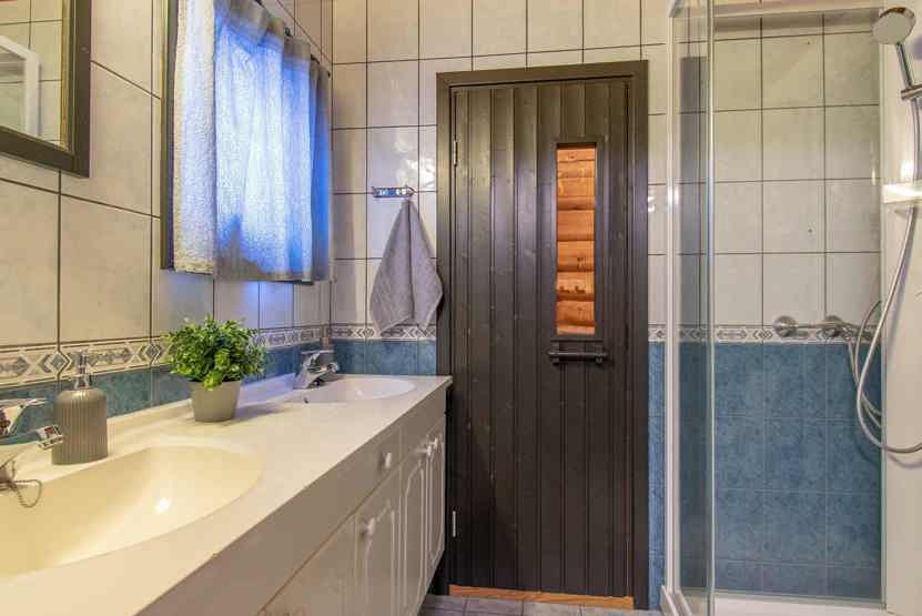 Badeværelser: Bad 1: Bruser, WC og sauna.