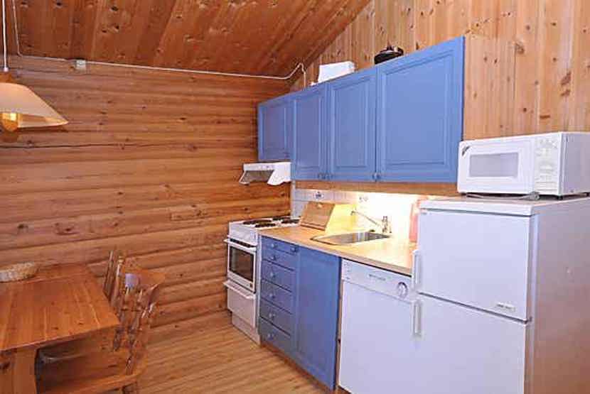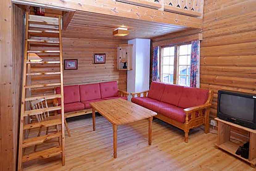 Lejlighed med hems, 4+2 sengepladser, 67 m², opholdsstue med TV, brændeovn og køkkenafdeling, 2 soveværelser. Stejl stige til hems, 1 bruser, 1 WC, 1 sauna.