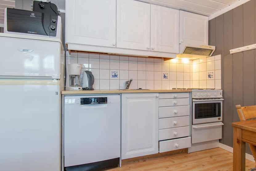 Køkken: Enheden har komfur med ovn, opvaskemaskine, mikrobølgeovn, køleskab, fryser.
