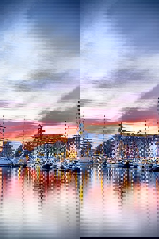Med en sejltur fra Balestrand igennem Sognefjorden ankommer man til Bergen - endnu en af Norges fantastiske storbyer. Bergen er altid blevet kendetegnet som byen, hvor det altid regner, men det stopper ikke Bergen fra at være en af Norges flotteste byer. En arkitektonisk og kulturel perle.