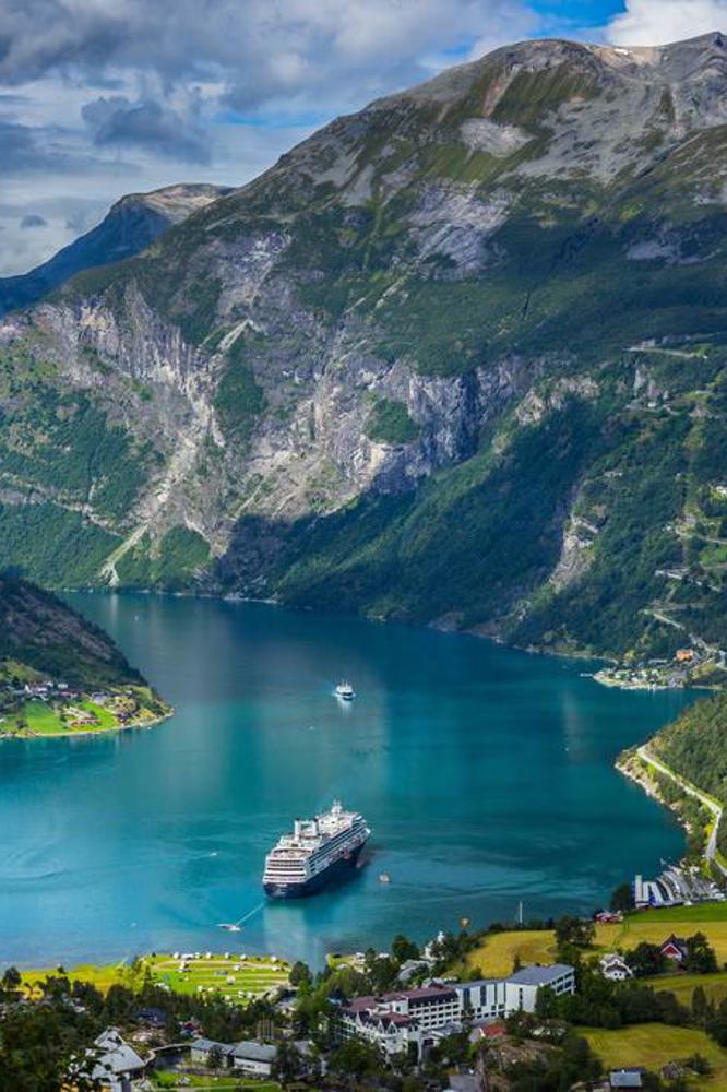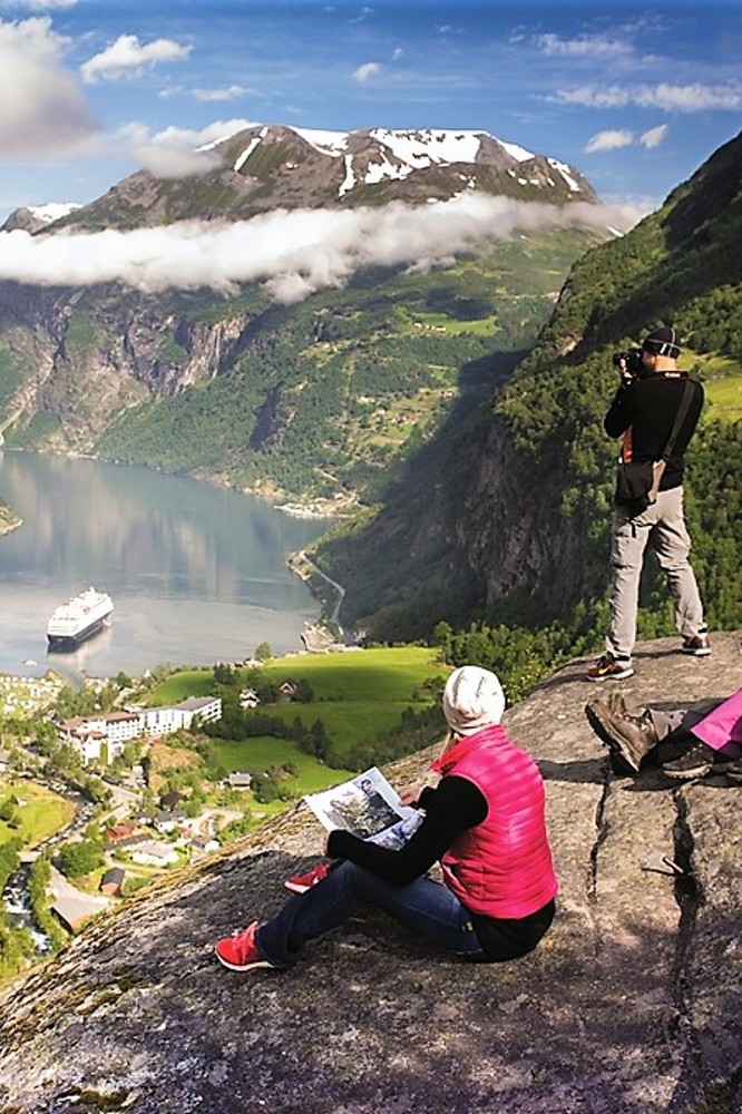 Næste højdepunkt på rejsen er endelig i sigte! Efter to overnatninger i Trondheim køres der sydpå igen. Geiranger ligger med en fantastisk udsigt over Geirangerfjorden, som kan prale med at være Norges smukkeste fjord. Mere end 160 krydstogtskibe besøger hvert år fjorden. Tusindvis af besøgende tager turen i egen bil og her får man virkelig valuta for pengene, når Trollstigen og Ørnevejen danner rammerne for at komme helt frem til denne velkendte fjord. Der startes med den imponerende fjeldvej ”Trollstigen”, der med sine 11 hårnålesving får busser, lastbiler og personbil til at krybe sig op og ned af fjeldsiden. Husk at stoppe ved top- og bundstationen og tag et par foto før du bevæger dig opad/nedad. Hvis vejret tillader det, så har man ved udsigtspunktet på Ørnevejen, udsigt over Geirangerfjorden og de brusende vandfald, ”de syv søstre”, i fugleperspektiv. Men først skal man gennem Valldal der er ”verdenskendt” i hele Norge! Her dyrkes nemlig de bedste jordbær, iflg. dem selv.