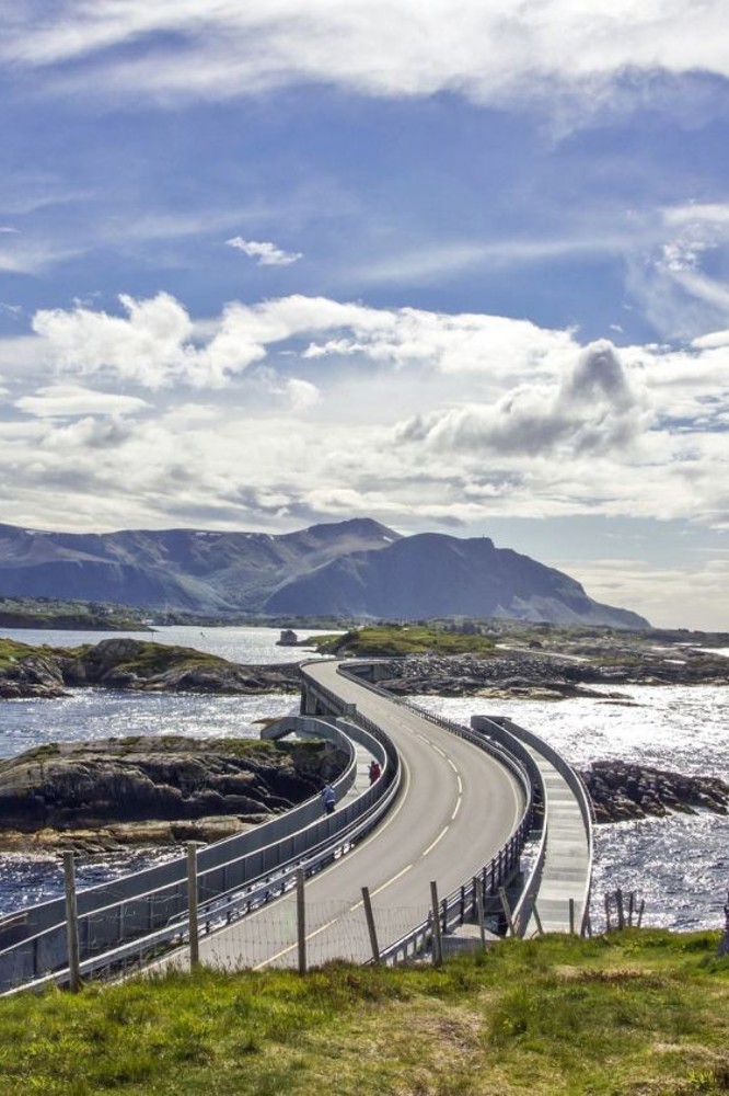 Atlanterhavsvejen I dag opleves en af turens højdepunkter! Atlanterhavsvejen, mellem Bud og Kårvåg, er en noget anderledes oplevelse – den 36 kilometer lange vejstrækning, fører dig over broer og dæmninger, fra ø til ø, helt derude hvor kysten bliver til hav. Dette mesterstykke af en landevej er blevet kåret til århundredets bygningsværk af nordmændene, og er på den britiske avis The Guardians liste over verdens bedste køreture.