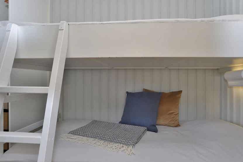 Soveværelse-1 = 1 køjeseng. Soveværelse-2 = 1 køjeseng med 120 cm bred underkøje, 1 køjeseng hvor både over og underkøje er 80 cm bred.