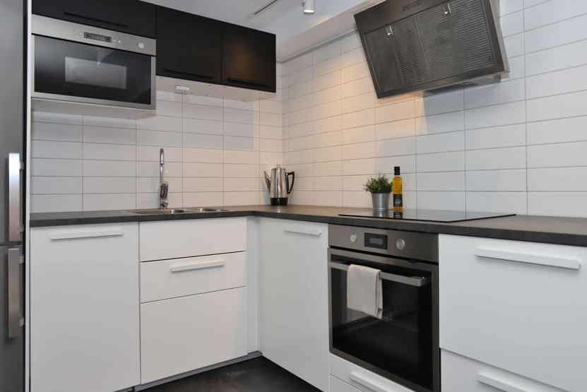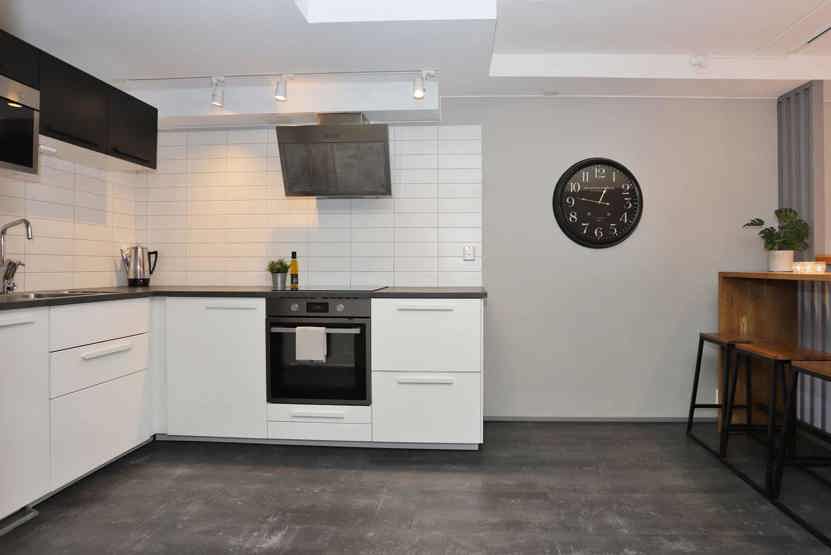 Stue med køkkenafdeling.