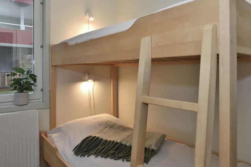 Soveværelse-1 = 1 dobbeltseng. Soveværelse-2 = 1 køjeseng med 105 cm bred underkøje. Soveværelse-3 = 1 køjeseng.