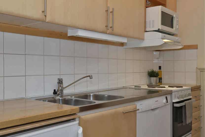 Stue med køkkenafdeling.