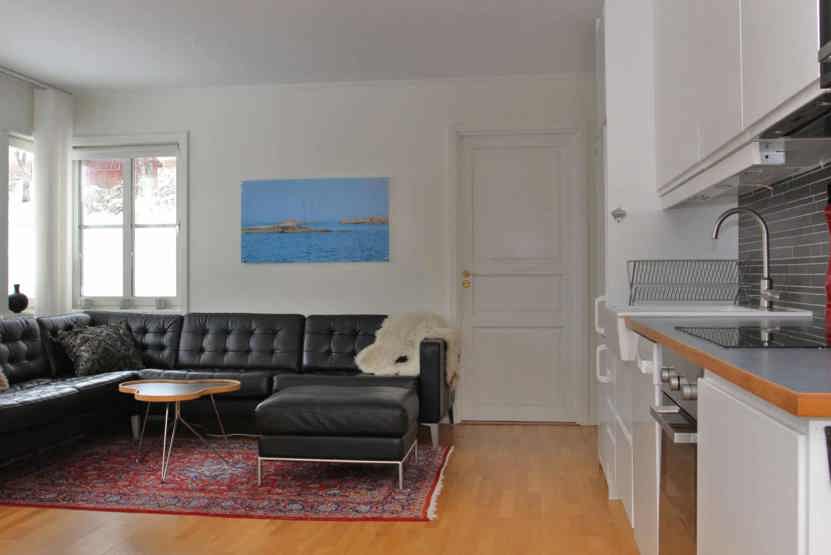 Stue med køkkenafdeling.