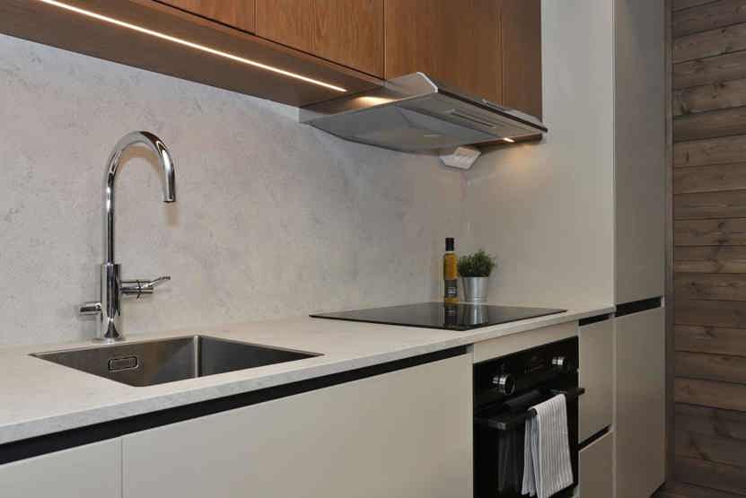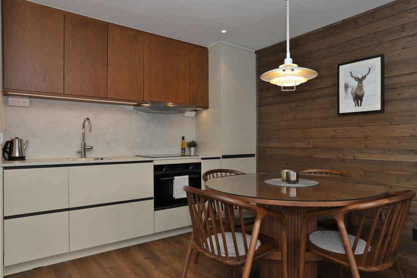 Stue med køkkenafdeling.