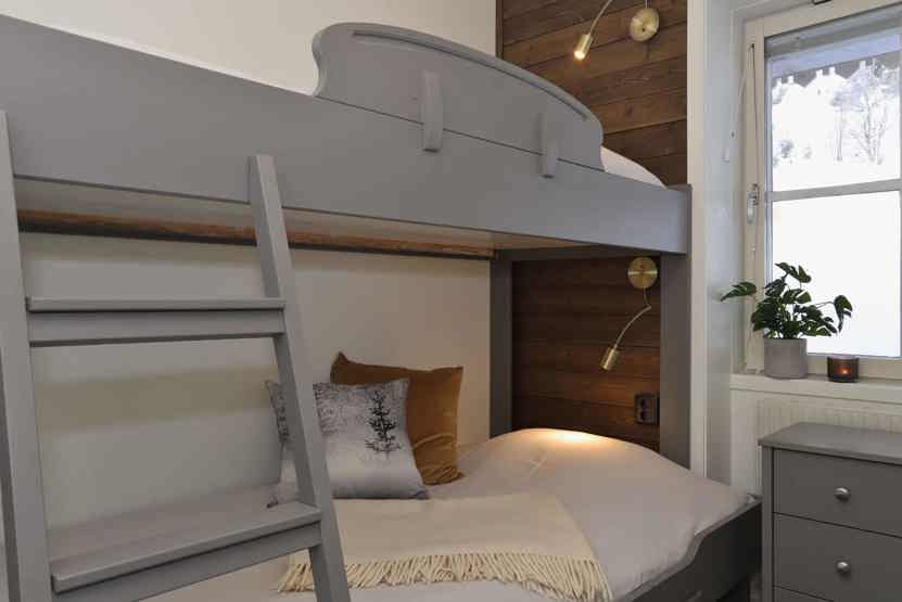 Soveværelse-1 = 1 dobbeltseng 160 cm bred. Soveværelse-2 = 1 køjeseng med 105 cm bred underkøje og 80 cm bred overkøje.