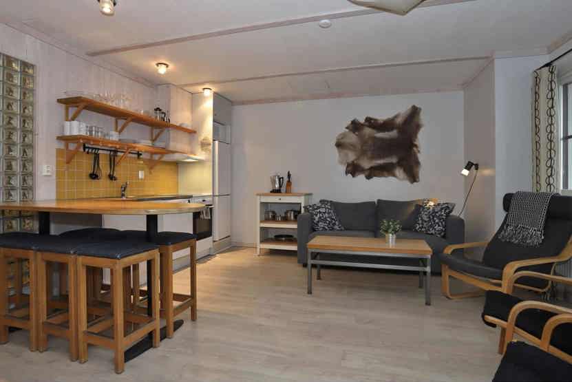 Stue med køkkenafdeling.