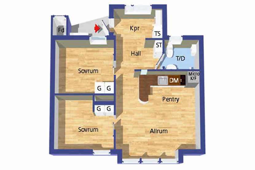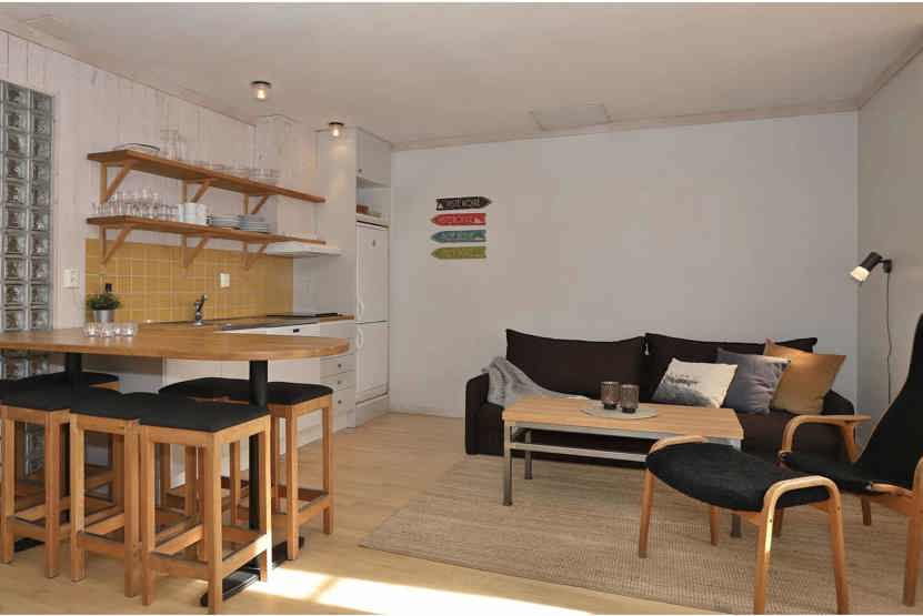 Stue med køkkenafdeling.